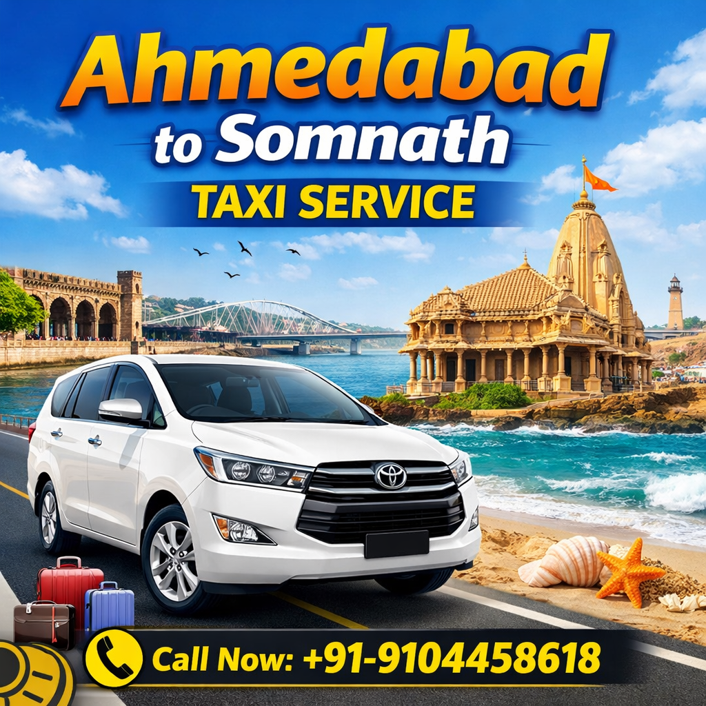Rajadhiraj Cab Service is a trusted and reliable taxi service provider offering seamless travel solutions for passengers traveling from Ahmedabad to Somnath. Somnath is one of the most revered pilgrimage destinations in India, famous for the Somnath Temple, and attracts thousands of devotees and tourists every year. If you are planning a trip from Ahmedabad to Somnath, Rajadhiraj Cab Service ensures a comfortable, safe, and hassle-free journey with a well-maintained fleet of vehicles and professional drivers.